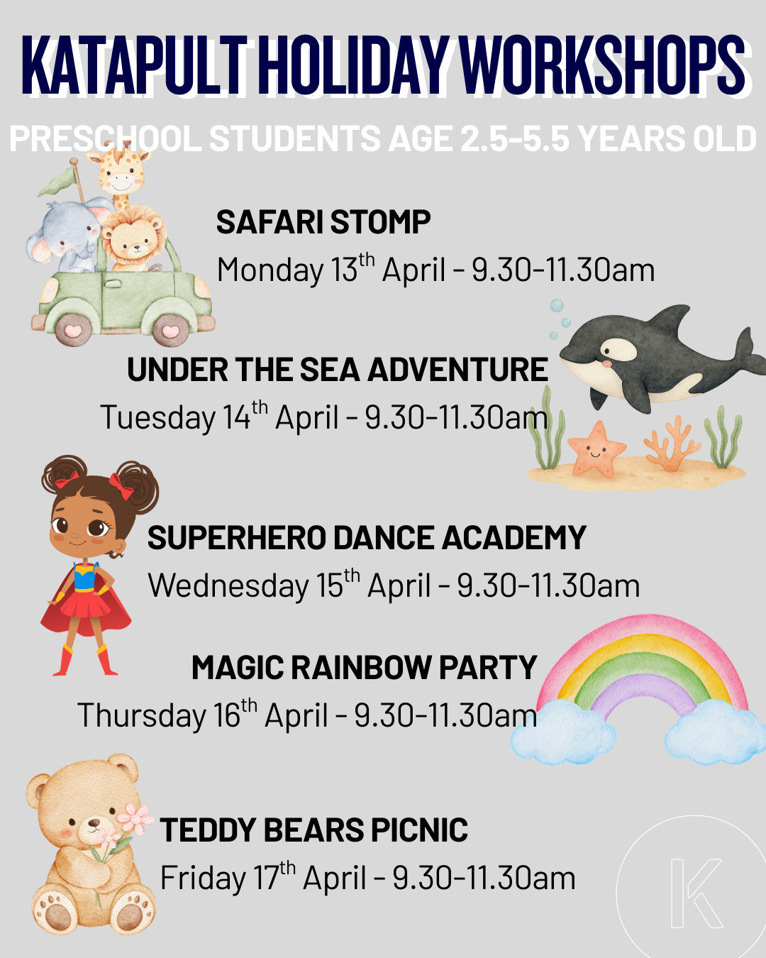 N.B. We are closed on public holidays. Classes missed due to public holidays will be rescheduled during the school holidays, starting on the first corresponding weekday.
